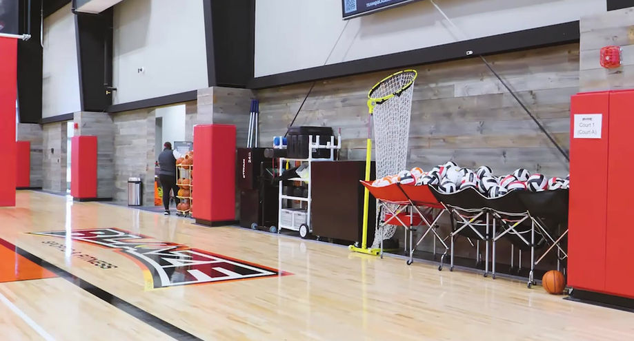 - 2 high school-sized basketball courts / 4 volleyball courts
